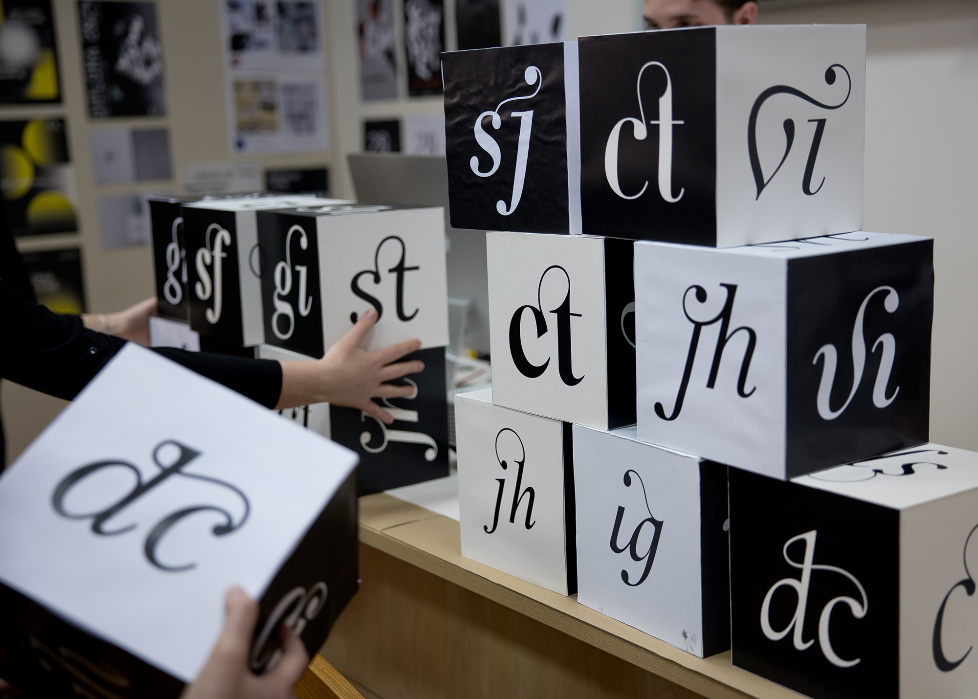 Az első évfolyam stílusokban történő otthonos mozgását a monogramoktól a kiállításarculaton át az analóg dinamikával rendelkező, önmagát tanító könyvtervig különféle feladatok segítették. Később a „luftpack” problémakörét valós adatokkal, érzékletesen vizualizálva jártak be egyéni és csoportos utakat. A másodévesek statikusnak tűnő betűkapcsolatai lendültek mozgásba a hatlapú kockákat valós térben és időben forgatva, pakolva, majd a mikrotipográfiai kalandok tapasztalatai reszponzív piktogramban és információs rendszerben alkalmazódtak, dinamikusan változó környezetünkre pedig a „rebrandek” adtak valós alternatívákat.