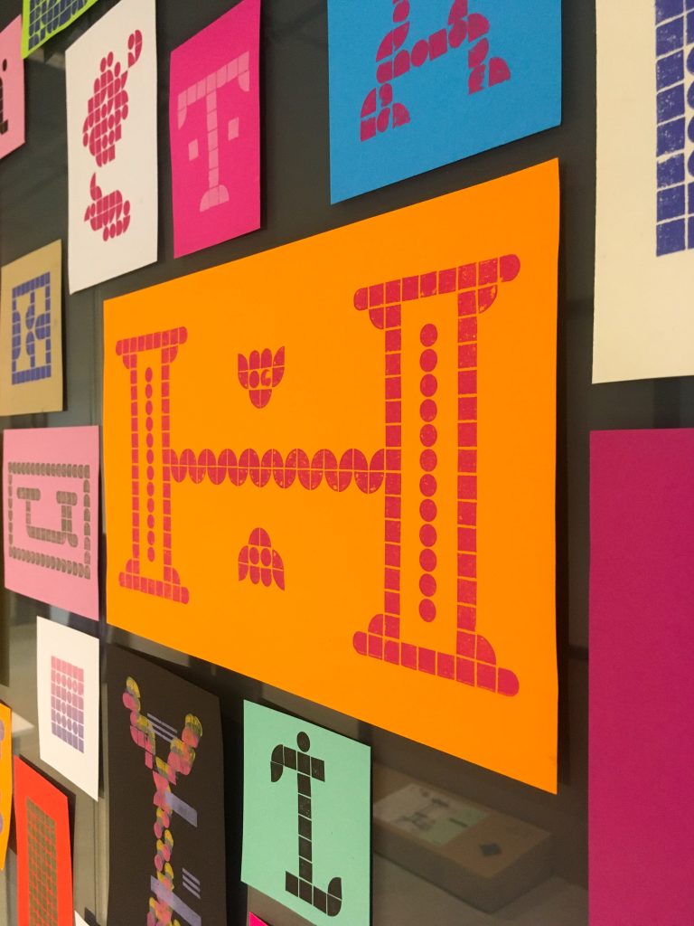 A résztvevő hallgatók többek között a Falus Elek tervezte Az Est, vagy a maga korát meghaladó Üzenet című evangélikus lap karakteres fejlécét alkották újra. A dimenzióváltás segítségével kiléptek a betűkre általában jellemző aprócska térből, ezzel is segítve megfigyelőkészségük fejlesztését. A feladat a betűk jellegzetes részleteinek, karakterisztikáinak vizsgálatával megmutatta, hogy milyen összetett világ a betűk rendszere. Mivel nem csak egyetlen karakter, hanem egy teljes szó vagy szókapcsolat megrajzolása volt a cél, ezért nem csak a betűn belüli, hanem a betűk közötti terek viszonyaira is figyelni kellett. „A betűk világában (is) a negatív és pozitív terek ugyanolyan lényegesek, egymás nélkül nem léteznek. Ez a gyakorlat abban segítette a hallgatókat, hogy megtanulják látni és értelmezni ezeket a tereket” – emeli ki Aliz.