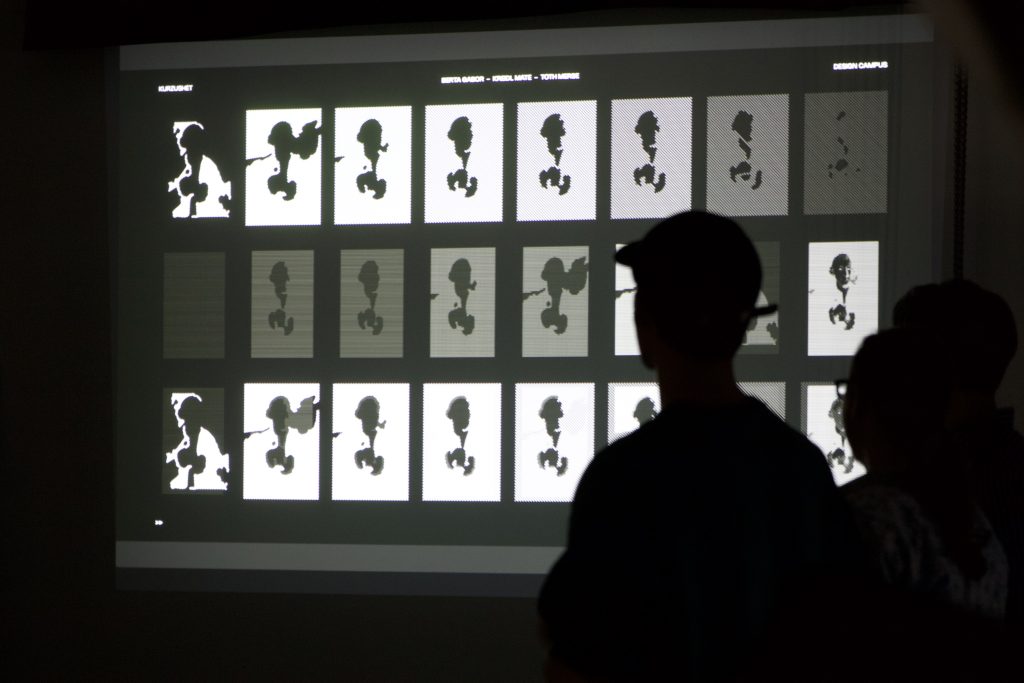 Kapcsolódva a Tervezőgrafika Tanszék idei féléves kiemelt Baskerville témájához Dénes Nóra fotóművész vezetésével a hallgatók a a fény-árnyék, nézőpont-látószög-perspektíva kognitív és perceptuális szerepét vizsgálták a képalkotásban. A résztvevők layeres anamorfikus installációt hoztak létre, melyet aztán animáció segítségével keltettek életre, valamint generatív audioreaktív vonatkozásban gondoltak tovább.