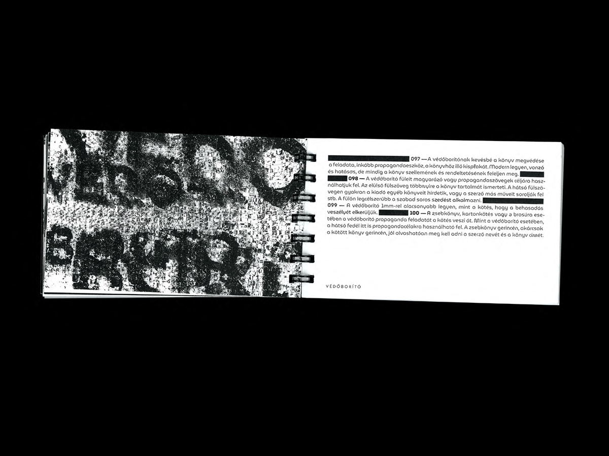 A könyv külső és belső elrendezése során élmény volt látni, ahogy teljes természetességgel folyt a digitalizálás és a festék az ujjbegyeken. Az anyagtalan, fénylő pixel pakolás, szövegtördelés és a manuális nyomhagyás a sketchbook firkáktól a monotípián át a printerek egyedi nyomataiig mind-mind fontos eszközzé váltak a Design Campus művész hallgatóinak alkotói gyakorlatában. A digitális mellett (és azzal harmóniában!) az analóg iránti fogékonyságuk révén is tudták értékelni, kellő kritikával helyén kezelni Herr Kapr tanár úrnak, a betűvel munkálkodás, tűpontos tipografálás német mesterének a könyvtervezői tanítását.