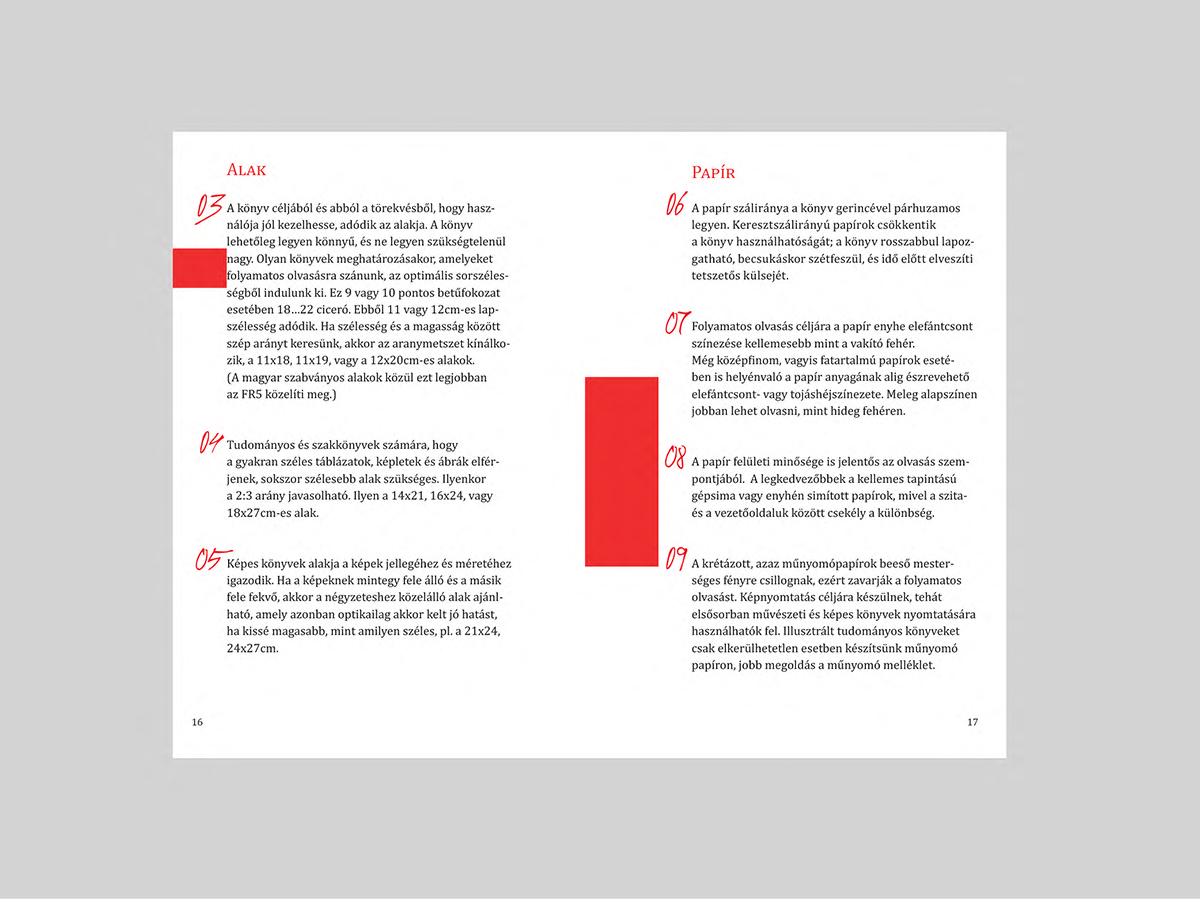 Hm, kötelező feladat. Nem ez. Talán mert Kapr lényegre törően, világosan tudott tartalmat tagolni, tananyagot átadni. Igen, ránézésre is szimpátiát keltően, már-már SMS-tömörséggel. Aki könyvvel, könyvtervezéssel kalkulál a jövőben is – látjuk a könyv életképességét médiumként, így nem botor ambíció ez –, annak többszörösen hasznos Kapr tételeivel foglalkozni. Ami oldalpárba rendezendő, az a tervezőgrafikusnak egyúttal szakmai útmutató is e rendezéshez.