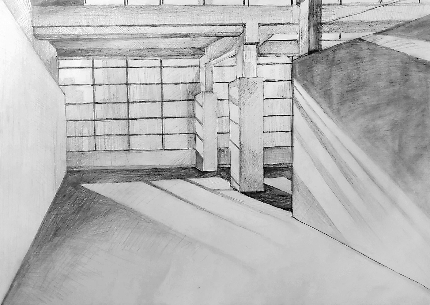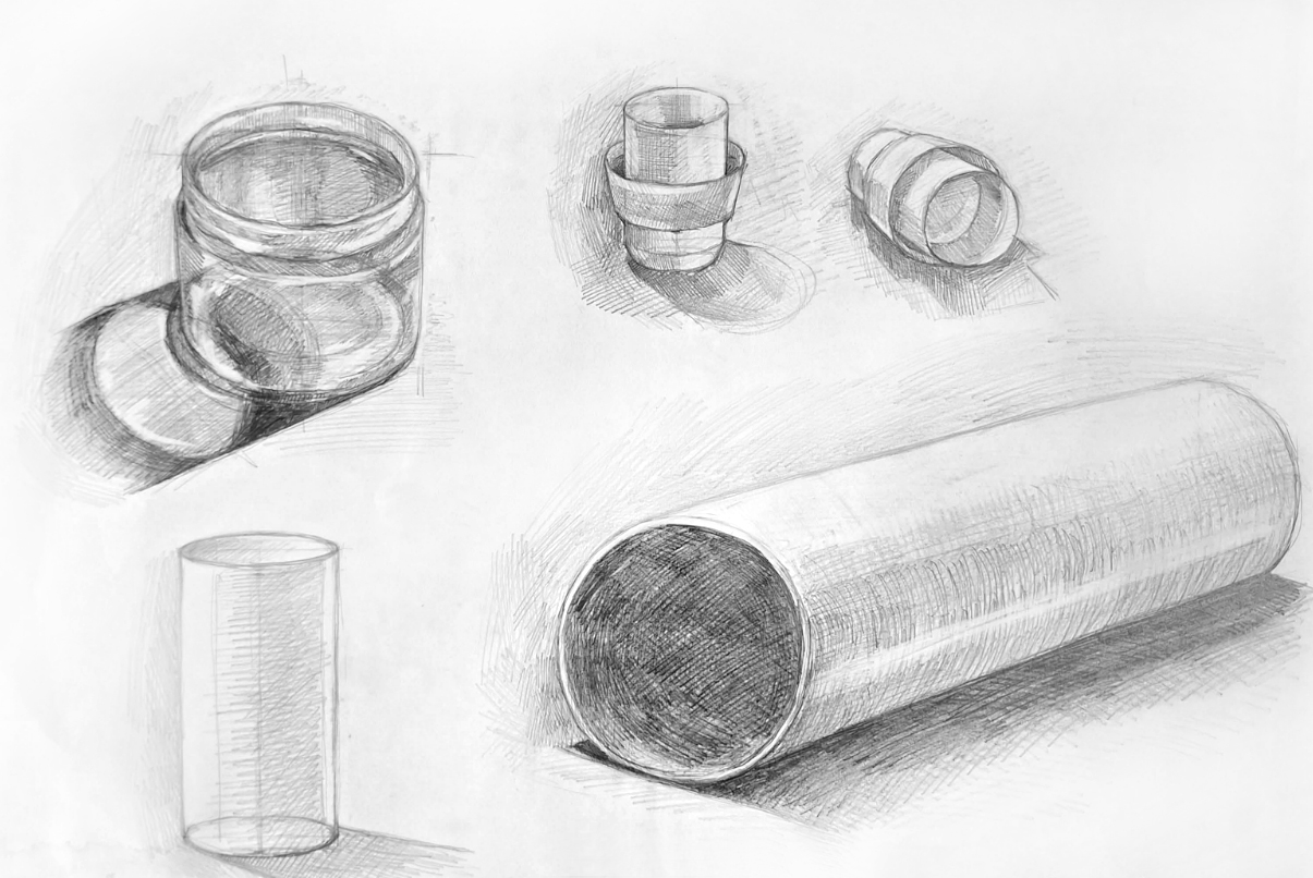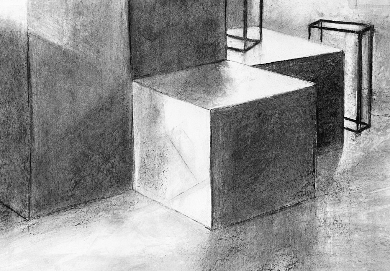 Az első félév a geometriai- és forgástestek vizsgálatán alapszik különböző hosszúságú, 4 és 8 órás beállításokkal, de a tér és a belső tér ábrázolása is meghatározó téma. Mivel minden első éves hallgató más rajzi háttérrel érkezik, ezért érdemes tiszta lappal indítani. Direkt kétértelműen fogalmazva: nemcsak a papírt, hanem a hallgatókat is újszerű, meghatározó impulzusok érik. Képességeik változatossága izgalmas kiindulópont azon az úton, aminek a végén mindenki rátalál saját, testhez álló rajzi módszerére. Ehhez viszont tényleg az „elején” érdemes kezdeni.
