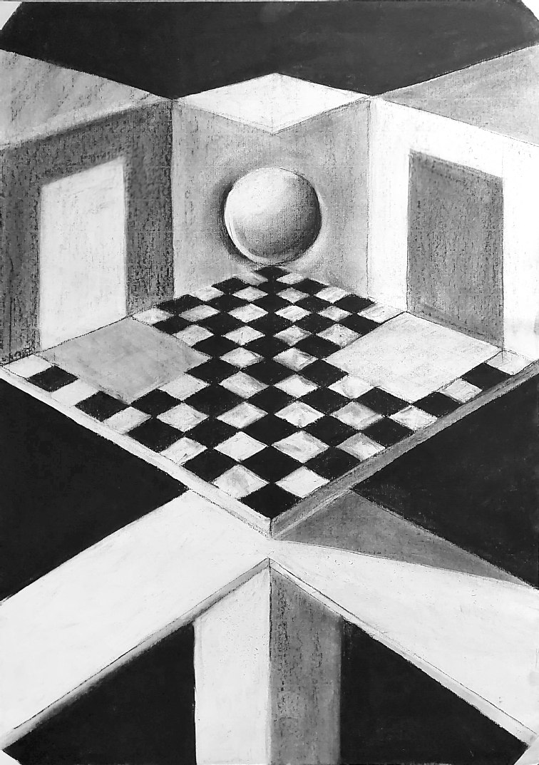 „Otthoni feladatként, kreatív jelleggel M.C. Escher anamorfikus tereivel foglalkoztunk. A konzultációk folyamán minden rajzi feladat bemutatásra kerül, ami oktatói szempontból elengedhetetlen, mert ilyenkor ismerhetjük meg a hallgatók egyéni rajzi világát. Ekkor folytathatunk beszélgetéseket a »miértekről«, hogy a későbbiekben a »hogyan« kérdés kapcsán is közös nevezőkre jussunk.